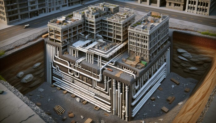 Perimeter drainage involves installing a comprehensive system around a building’s foundation to manage water flow and prevent moisture from entering the property, thereby protecting the structure from potential water damage.